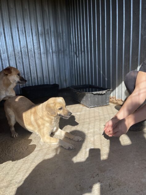 Kun hetken kuluttua uusi tilanne alkaa rauhoittumaan, tulee Mami Mona syömään herkkuja aktiivin kädestä muutaman kerran, ja antaa tutumman ihmisen rapsutellakin. Tässä varsin hurmaavassa tytössä on hurjasti potentiaalia, ja reipas tasapainoinen koirakaveri kotona voisikin auttaa kotiutumisessa ja kotikoiran taitojen opettelussa.